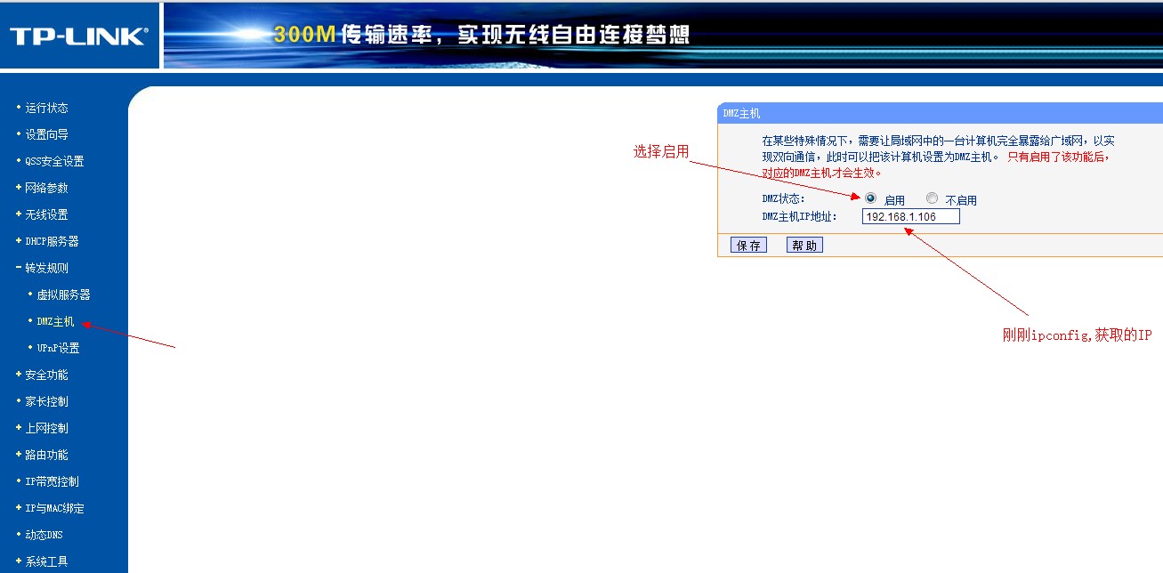 第三步:浏览器输入输入 http://192.168.1.1 登陆路由器里设置DMZ主机。